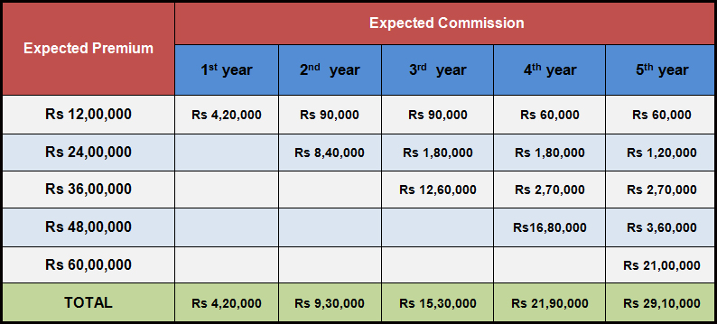 As Years passes by your Renewal Commission keeps on increasing there by assuring you a pension for the next 20 to 25 years when you stop working or to your family on your death.